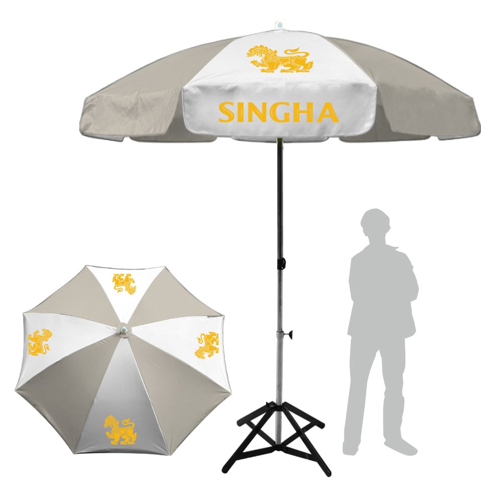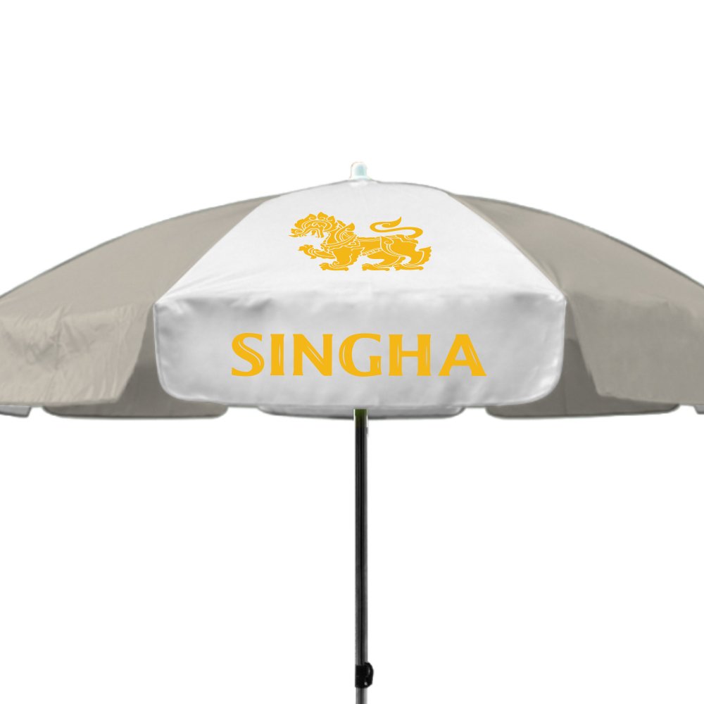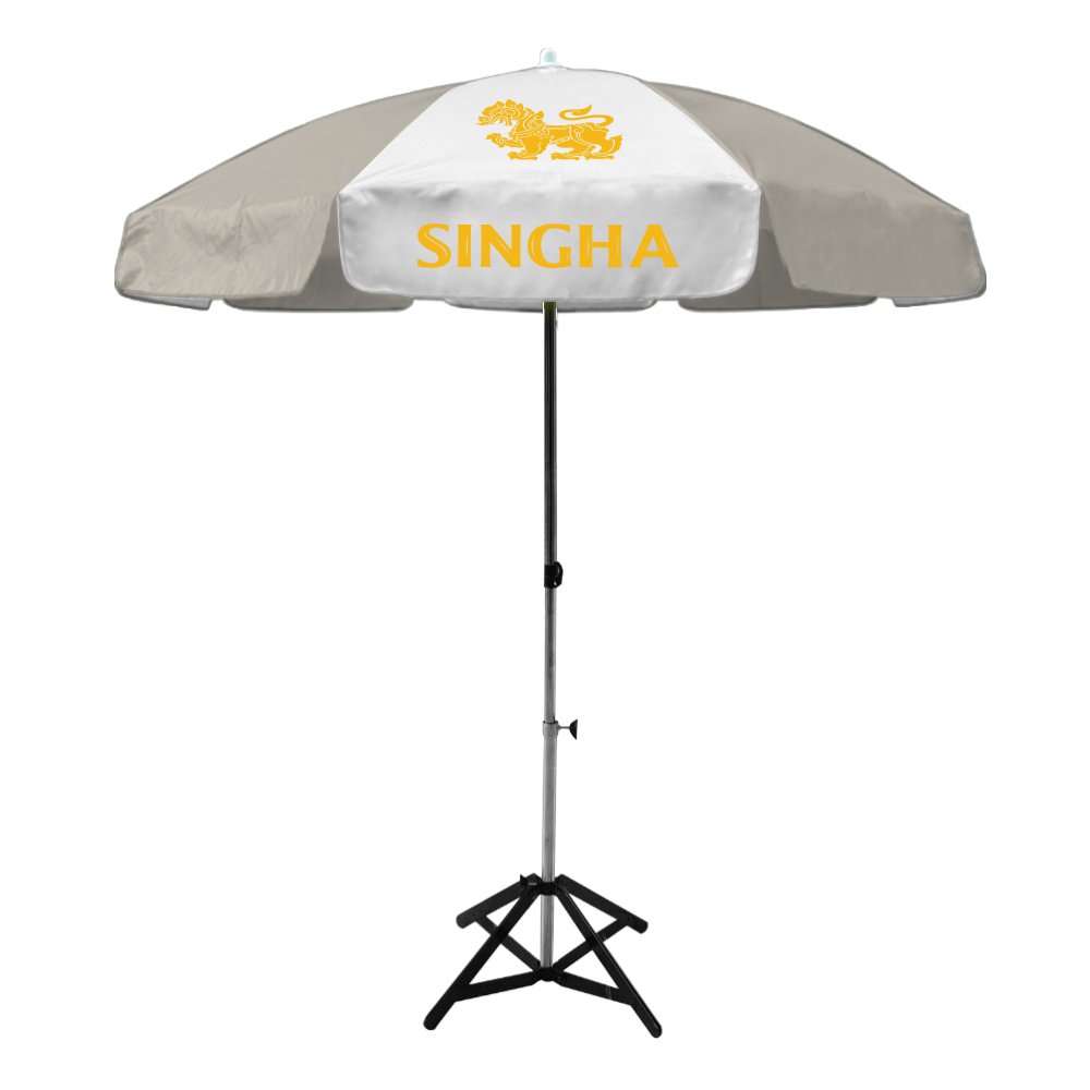 ร่มสนามขนาดใหญ่ 50นิ้ว จากลูกค้า Singha ได้ติดต่อเข้ามาสั่งทำร่มสนาม เป็นร่มทรงกลม8ช่อง โครงร่มเหล็กชุบโครเมี่ยม พร้อมทั้งสีร่มสลับทูโทนสีขาวและสีครีม พร้อมงานสกรีนโลโก้ 1สี 8ช่อง