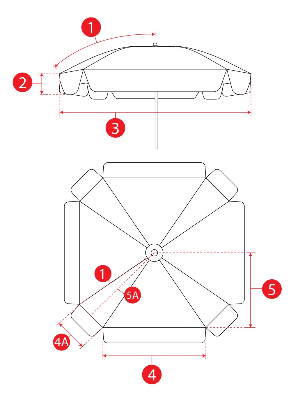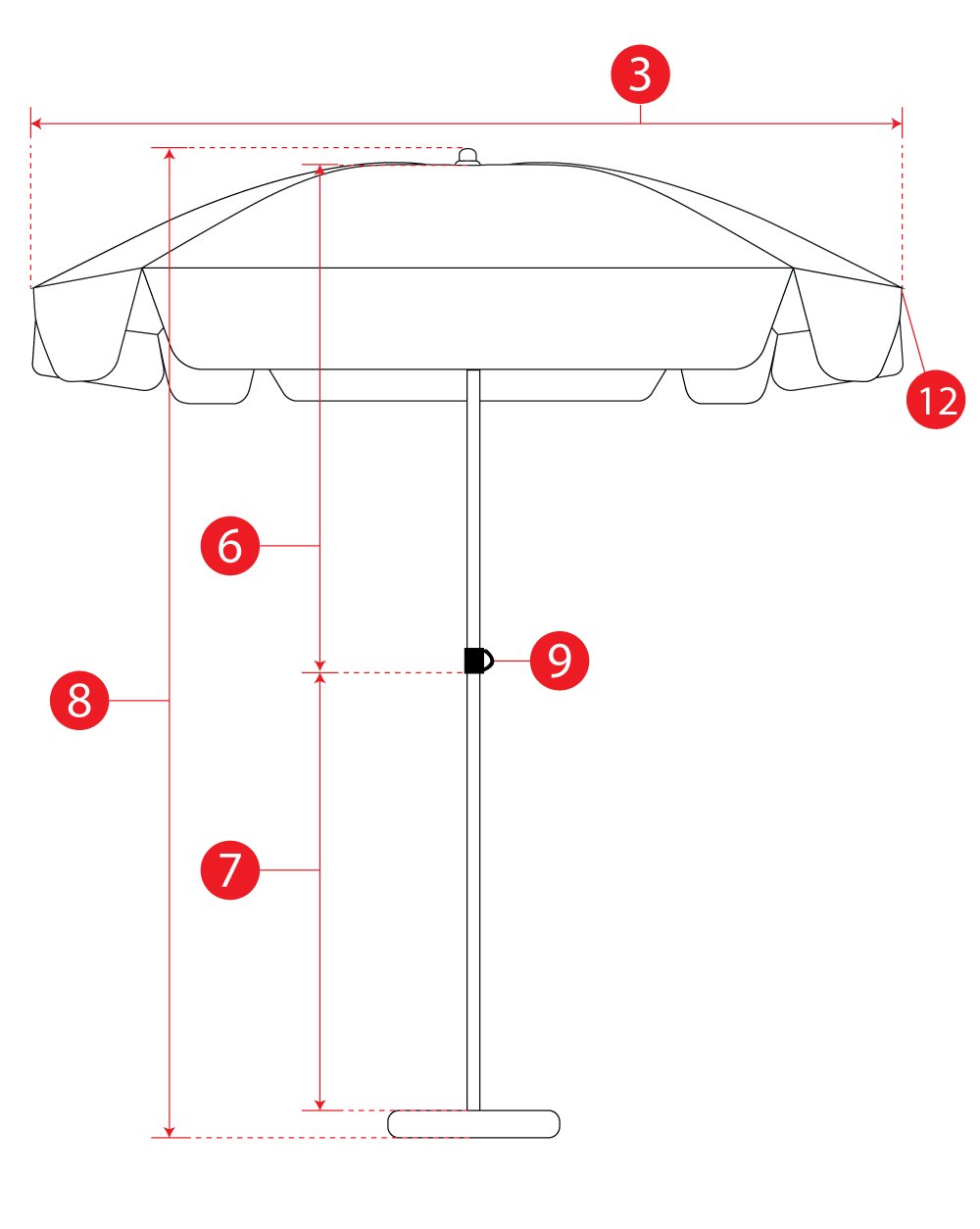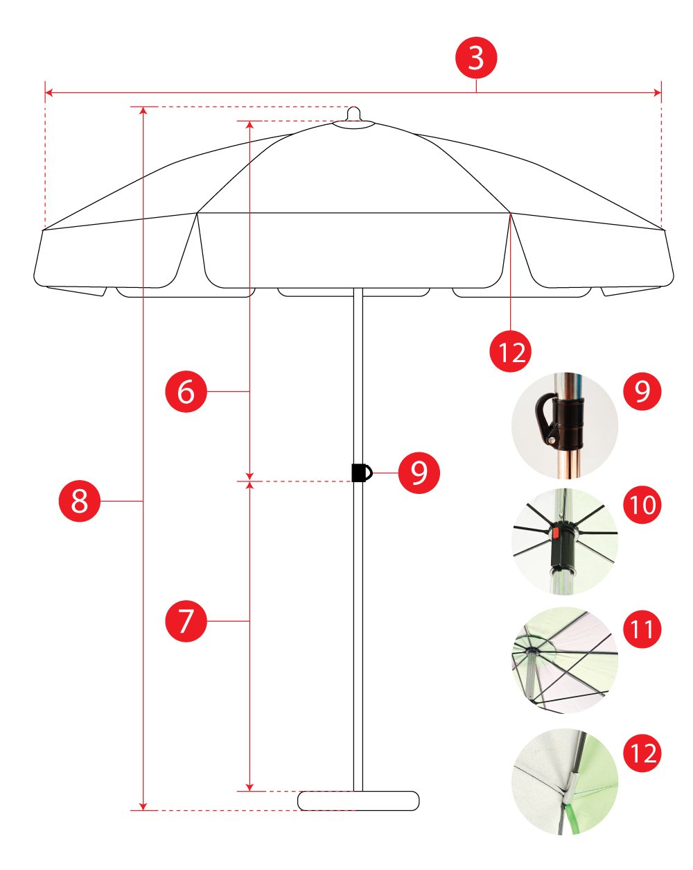 รายละเอียดขนาดร่มสนาม แต่ละทรง